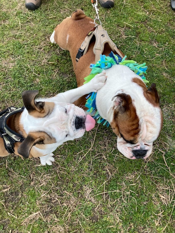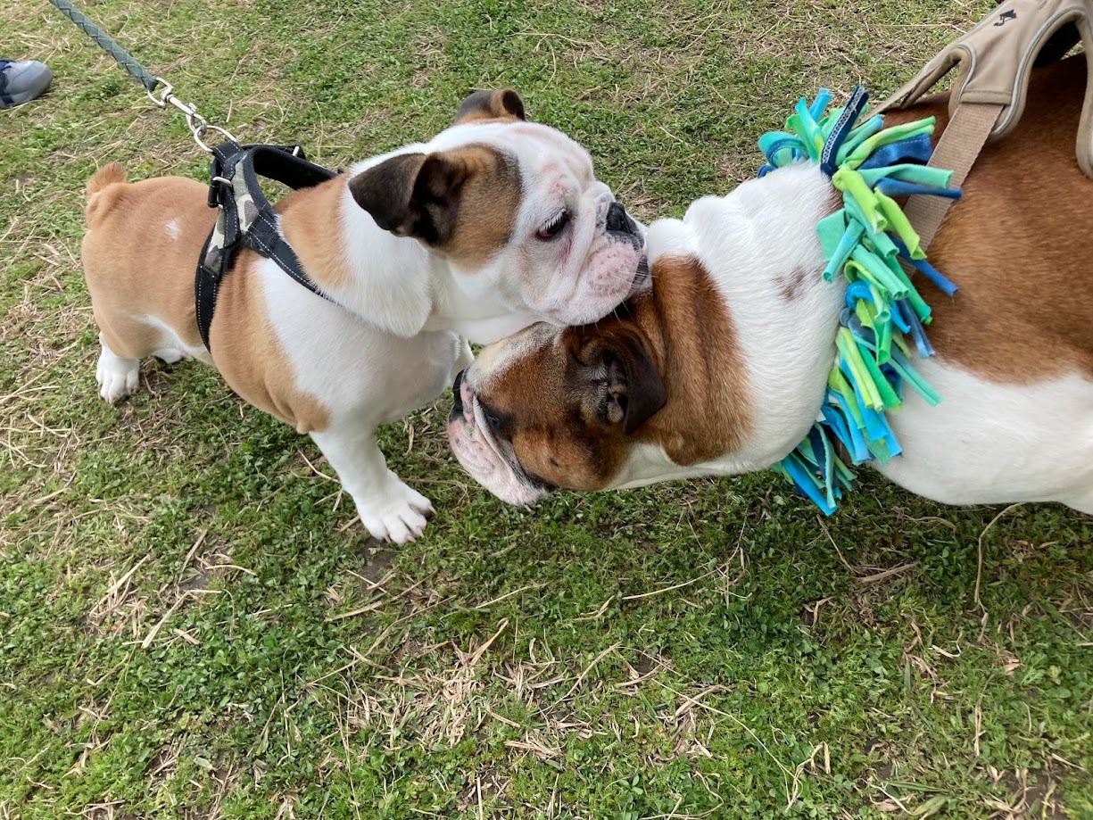 バム君からパンチをいただく看板犬