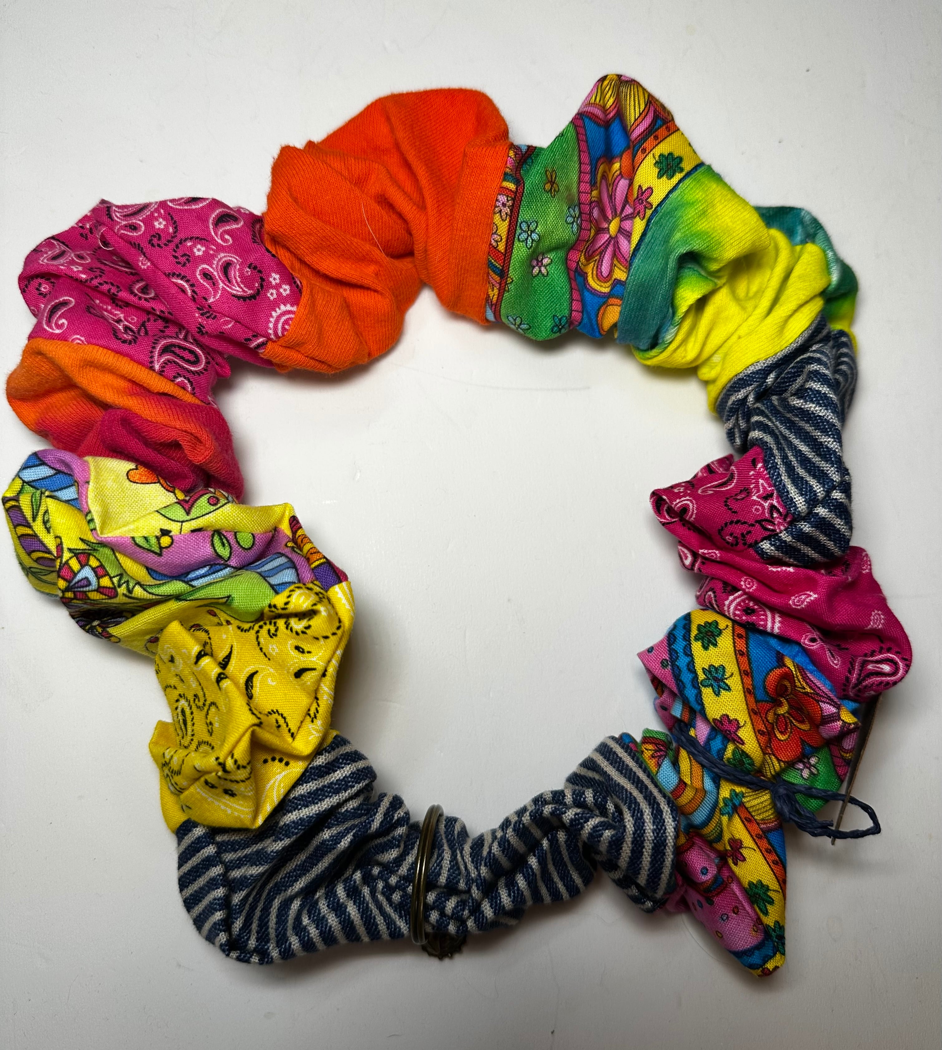 色んなカラフル生地を繋いで作ったシュシュ風首飾りです!
